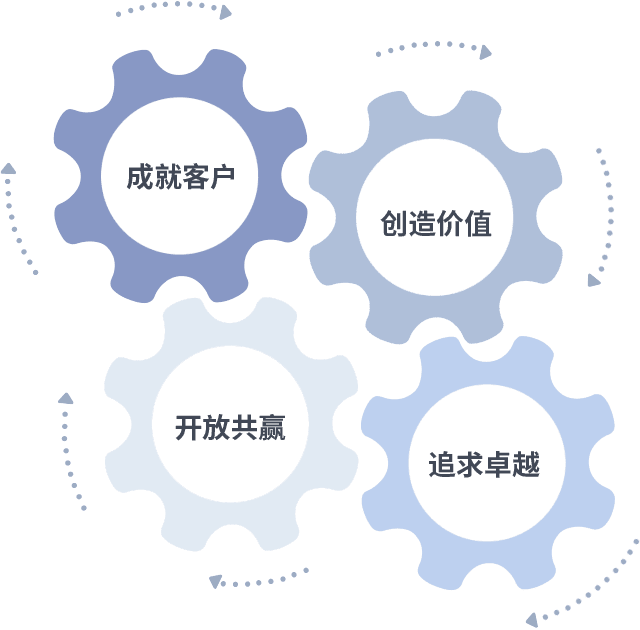 成就客户是一切决策的出发点,创造价值是衡量所有工作的标准,追求卓越是尊龙凯发做事做人的态度,开放共赢是尊龙凯发的格局也是最终的结果。价值观的齿轮环环相扣,推动着组织里的每个人不断向前。